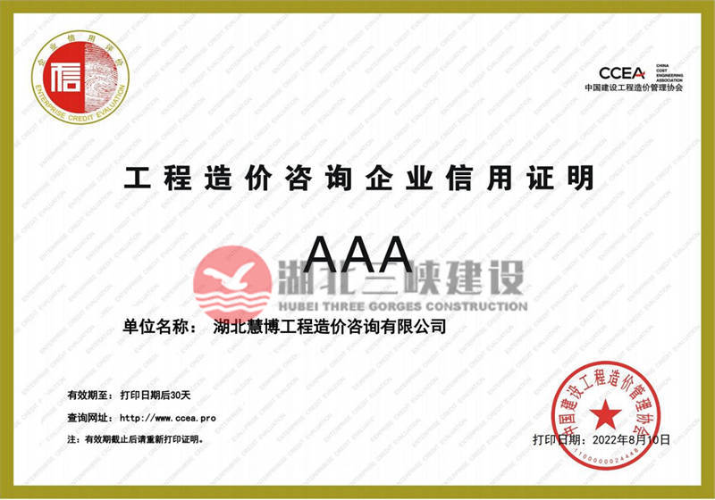 工程造價咨詢企業(yè)信用證明AAA