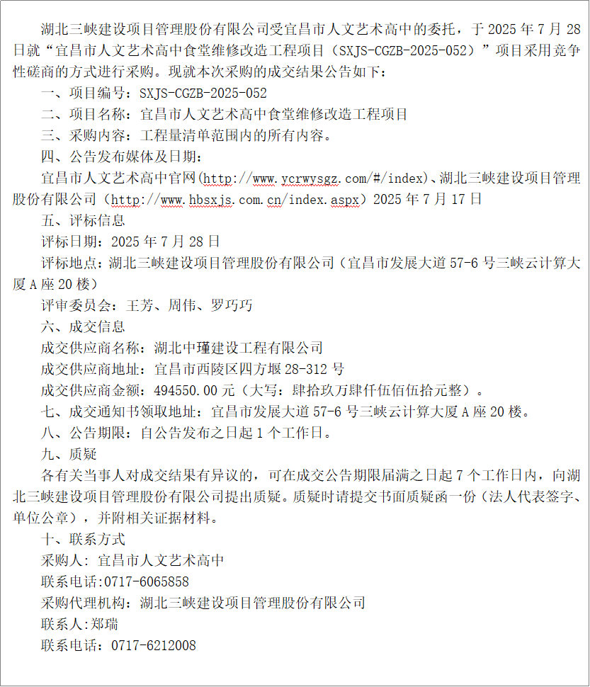 | 宜昌市人文藝術(shù)高中食堂文化建設(shè)項(xiàng)目成交結(jié)果公告 |