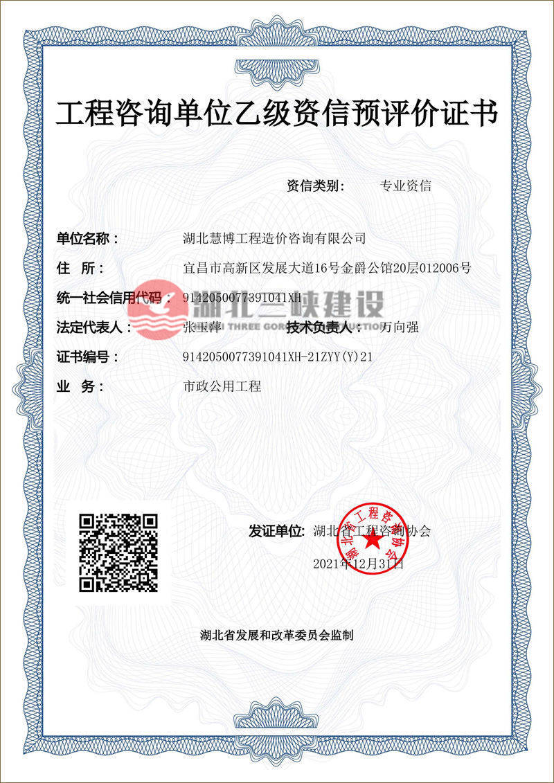 | 工程咨詢單位乙級(jí)資信預(yù)評(píng)價(jià)證書 |