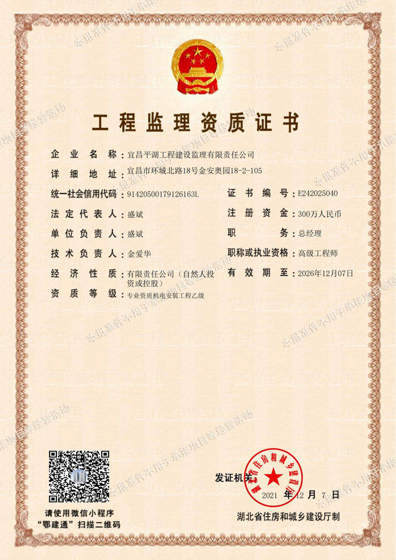 湖北三峽建設項目管理股份有限公司立足湖北宜昌,業(yè)務范圍遍及新疆、云南、福建、廣東等省市,為投資人提供了誠信、科學、公正的項目管理咨詢服務。公司注重以人為本,匯聚了專業(yè)、敬業(yè)、廉潔的人才隊伍,擁有全國注冊監(jiān)理工程師120余人、一級造價師20余人、一級建造師30余人、咨詢工程師(投資)10余人;公司致力以標準為證,公司研發(fā)的信息管理系統(tǒng)獲國家版權局計算機軟件著作權證;公司追求以價值為魂,鑄就了全過程控制、全要素服務的工作作風,所承擔的項目獲國家級建基,形成了履責行為規(guī)范和風險管理機制,質量管理、環(huán)境管理、職業(yè)健康安全管理獲ISO9001、ISO14001、 ISO 45001管理體系認設工程質量安全獎7項、省級建設工程質量安全獎100余項,市級建設工程質量安全獎300余項,合同履約率100%,項目優(yōu)良率42%。